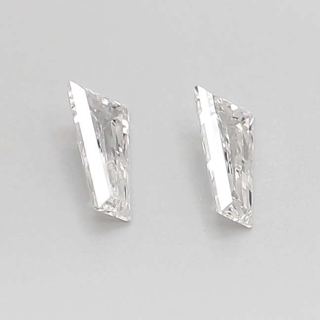 With compact, well-balanced dimensions of 5.00 mm length, 2.75 mm width, and 1.45 mm height, this matched pair presents a neat face-up profile and consistent depth. The precise step-cut lines and smooth tapering edges make these diamonds ideal as elegant side stones, subtle accents, or complementary elements in bespoke rings, earrings, and fine jewelry creations.