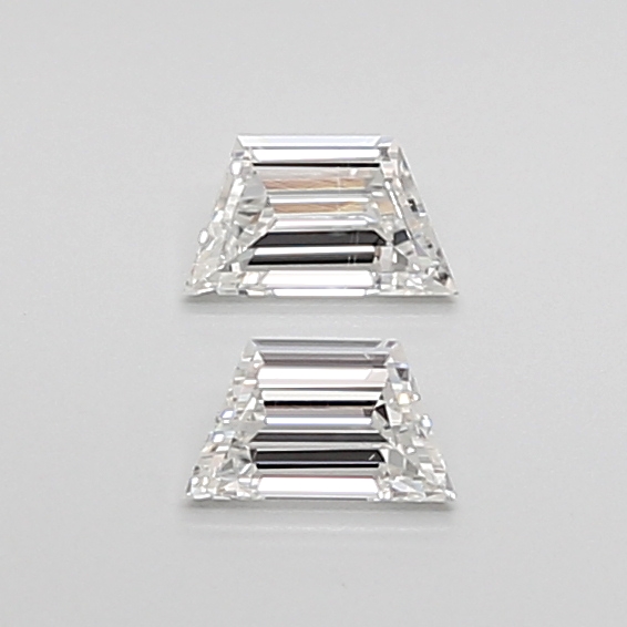 Slim natural trapezoid diamond pair with clean step facets and precise lines.