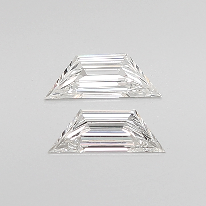 Slender natural trapezoid diamond pair with clean step facets and elongated geometry.