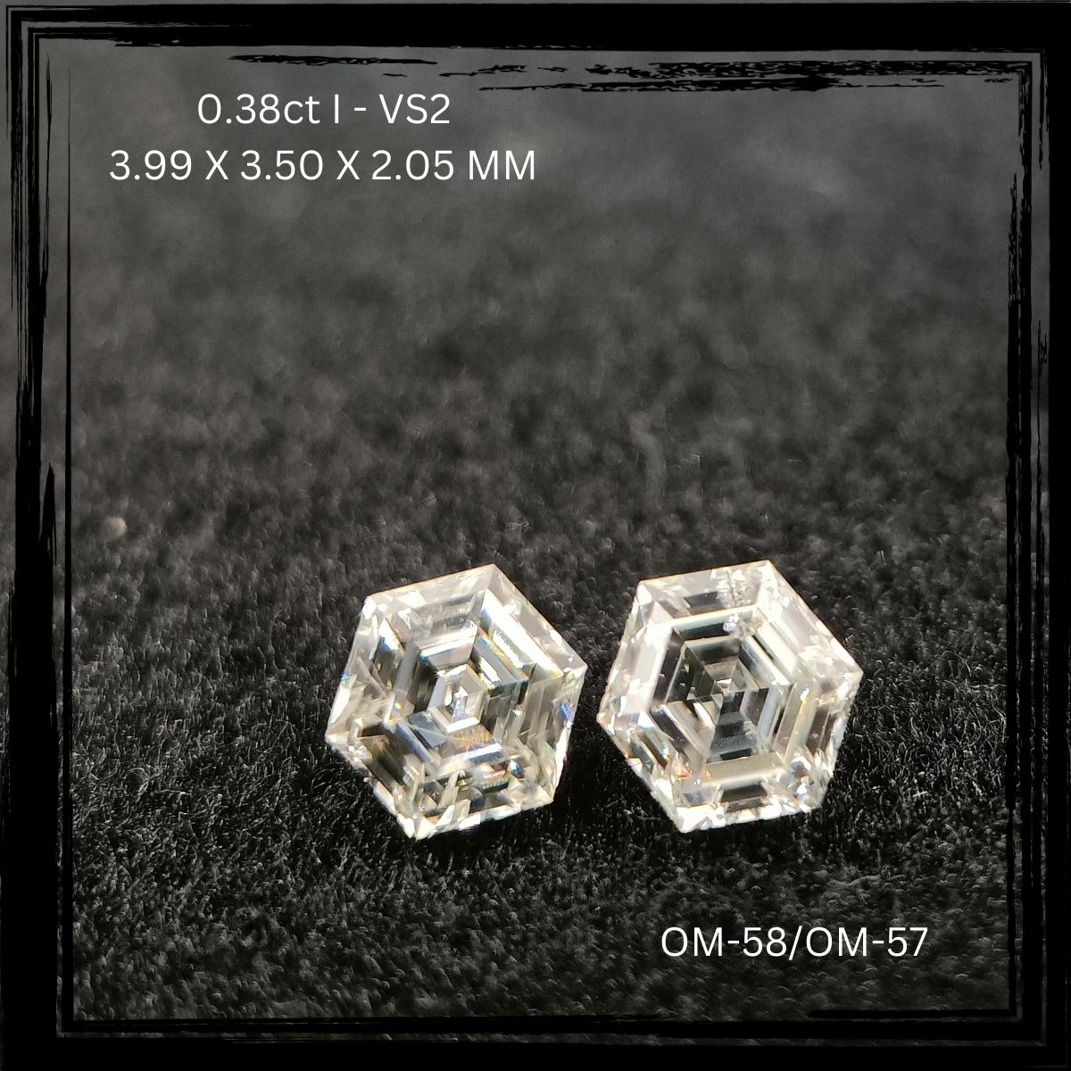 This neatly matched natural hexagonal diamond pair from OM Jewels Inc highlights refined symmetry, elegant proportions, and precise step-cut craftsmanship. Carefully curated from our Pairs Inventory, these diamonds are thoughtfully matched to ensure harmony in shape, size, and faceting?making them an excellent choice for sophisticated bespoke jewelry.
