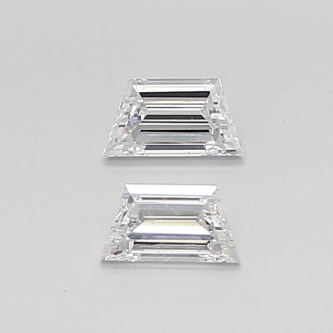 Expertly cut in a trapezoid shape, each diamond measures 4.95 mm in length, 2.70 mm in width, and 1.80 mm in height, highlighting sharp step-cut facets that create structured geometry and refined brilliance. Their compact design makes them ideal as side stones, accent diamonds, or paired arrangements that complement larger centerpieces, adding symmetry and elegance to any jewelry design.
