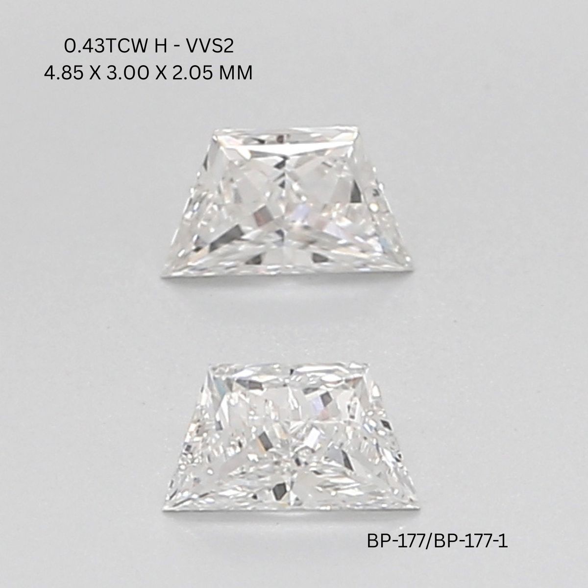 0.43 CT H VVS2 TRAPEZOID diamond Pairs Inventory Total Weight: 0.43 Ct