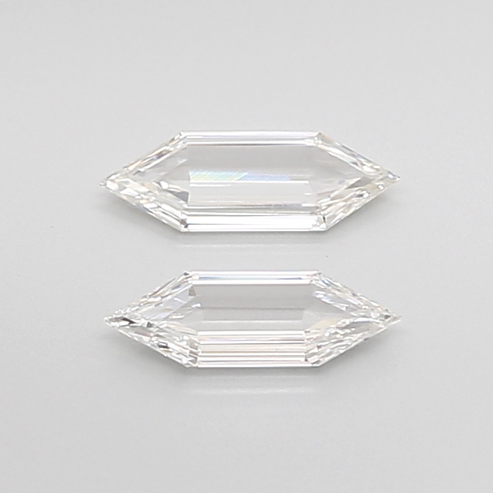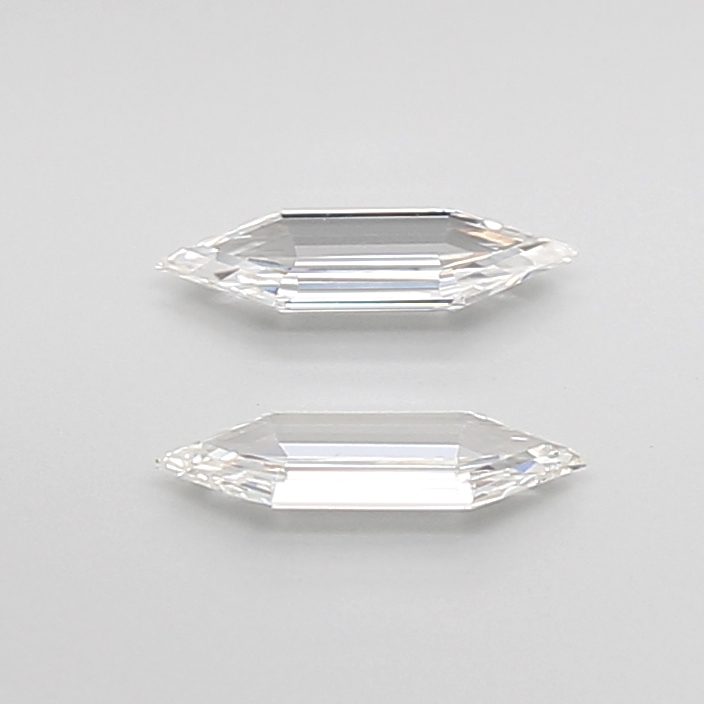 With a combined weight of 0.44 carats, each diamond is expertly matched for proportion and symmetry, measuring 7.80 mm in length, 2.70 mm in width, and 1.25 mm in height. The elongated hexagonal shape delivers a contemporary architectural silhouette, making this pair an exceptional choice for refined side stones, modern earrings, or bespoke fine-jewelry designs that emphasize clean lines and understated sophistication.