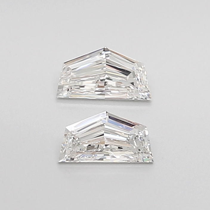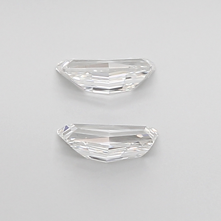 Precision cutting is evident in the proportions, with a length of 5.35 mm, width of 2.90 mm, and height of 1.85 mm, resulting in excellent face-up presence and consistent depth across the pair. The sharp step facets and crisp edges highlight the geometric beauty of the Cadillac cut, making these diamonds ideal for sophisticated side stones, statement earrings, or custom high-jewelry creations.