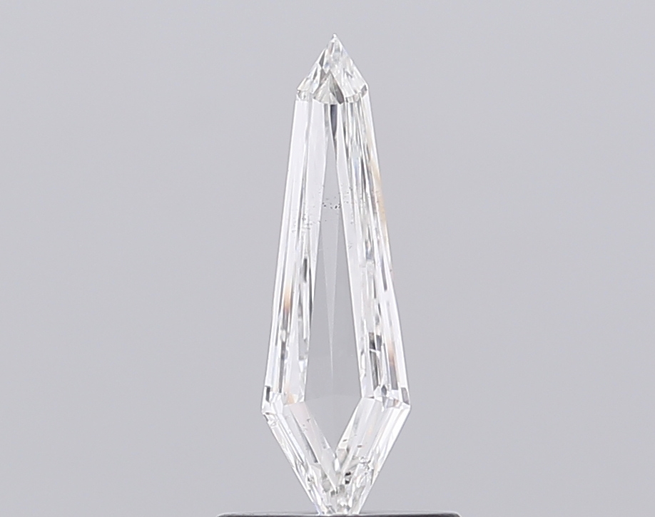 Weighing 0.50 carat, the diamond features an elongated shield shape that emphasizes length and sharp definition. Its narrow, extended profile creates a dramatic face-up appearance, lending a sense of movement and sophistication while remaining clean and controlled in form. This shape is especially prized for contemporary and statement-driven jewelry designs.