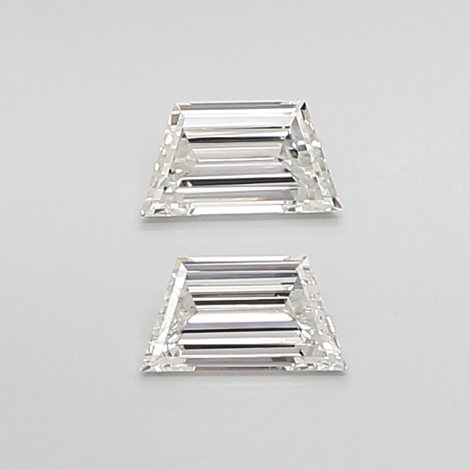Expertly cut in the trapezoid shape with a step cut, the pair measures 5.60 mm in length, 3.10 mm in width, and 1.75 mm in height, showcasing clean step faceting, precise symmetry, and well-balanced proportions. The harmonious geometry and refined sparkle make them versatile for both classic and contemporary settings.