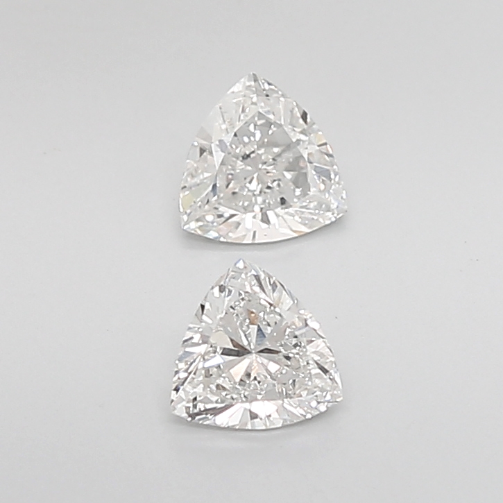 Lively natural trilliant diamond pair displaying bright brilliance and balanced triangular form.