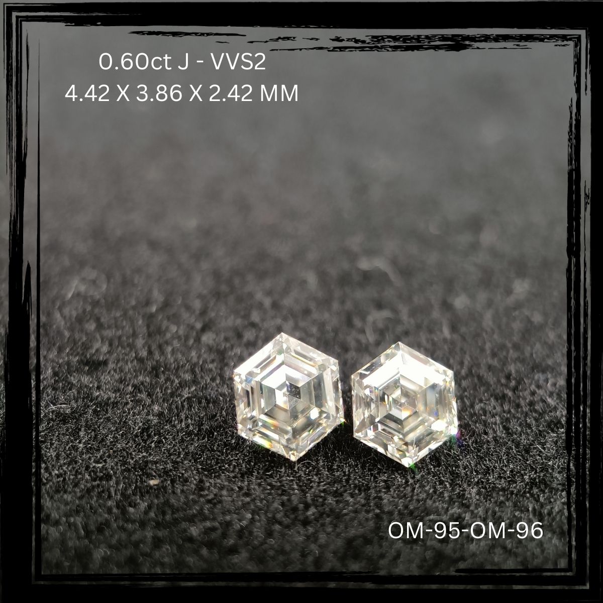 Exquisite natural hexagonal diamond pair from OM Jewels Inc highlights exceptional precision, purity, and symmetry. Carefully curated from our Pairs Inventory, these diamonds are expertly matched to function seamlessly together, offering harmony in proportion, faceting, and visual appeal?ideal for refined bespoke jewelry designs.