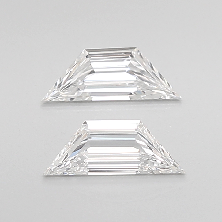 High-clarity natural trapezoid diamond pair with precise step faceting.
