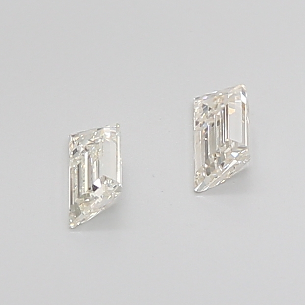 This perfectly matched 0.61 carat diamond pair features a sophisticated step cut, renowned for its clean lines and mirror-like flashes that emphasize clarity and structure. The trapezoid shape makes these diamonds an ideal choice for side stones, bespoke engagement rings, luxury earrings, or high-end custom jewelry creations.