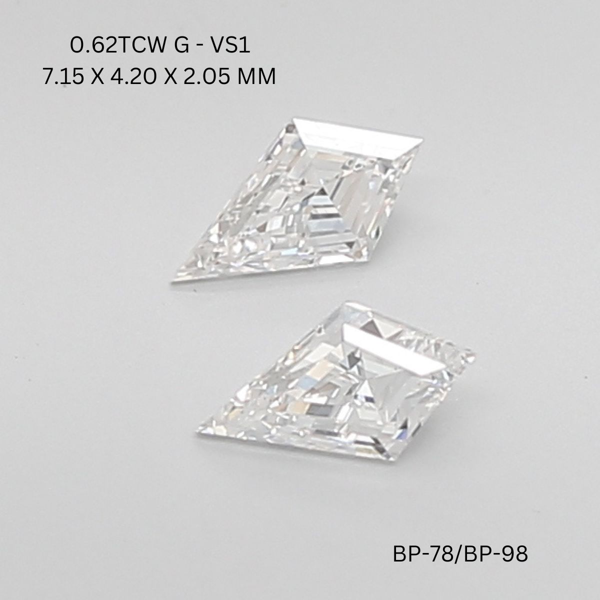 With balanced dimensions of 7.15 mm length, 4.2 mm width, and 2.05 mm height, these kite-shaped natural diamonds are ideal for bespoke earrings, designer rings, or statement jewelry pieces. Their natural origin, symmetry, and refined proportions make them a versatile choice for luxury and custom jewelry applications.