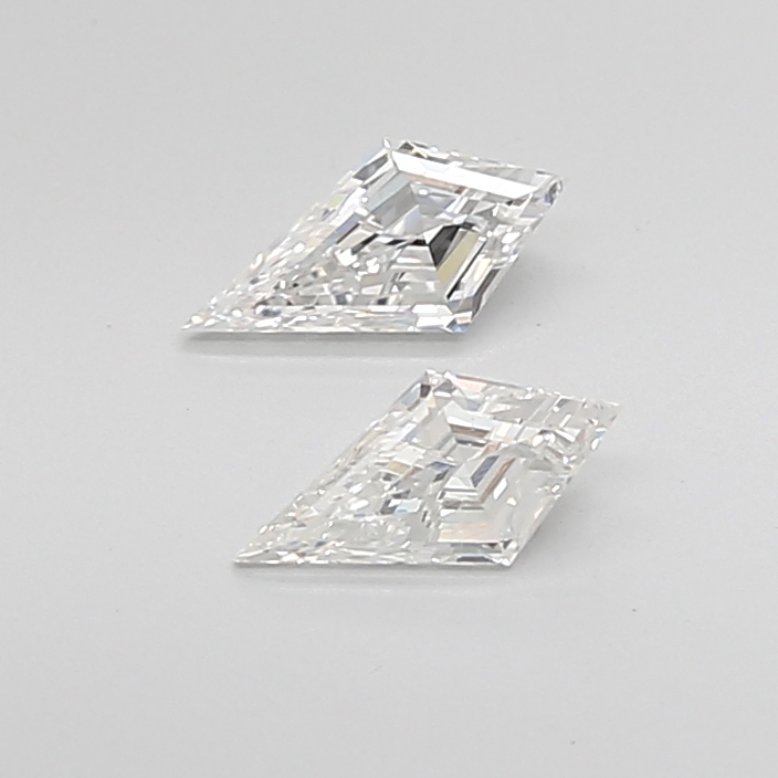 The elongated Kite shape is defined by sharp angles and a sleek architectural silhouette, offering dramatic presence and modern appeal. Finished with a precise Step cut, the diamonds display clean, linear facets that emphasize structure, depth, and understated brilliance, drawing attention to the natural clarity and geometry of the stones.