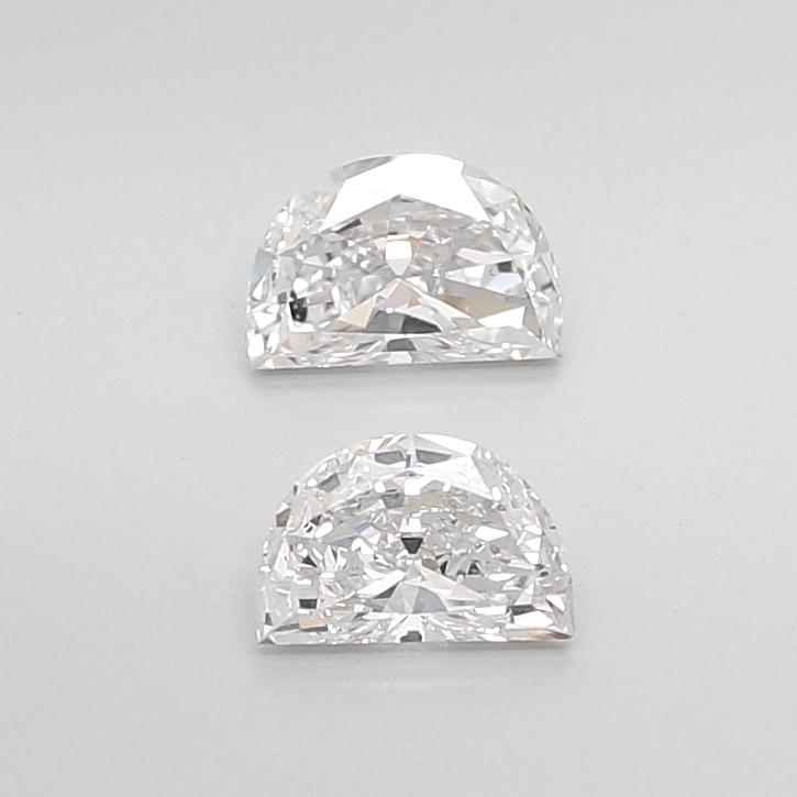 With a combined weight of 0.68 carats, each diamond is precisely proportioned and harmonized, measuring 5.70 mm in length, 3.75 mm in width, and 2.25 mm in height. The classic half-moon shape introduces soft curves and visual symmetry, making this pair an ideal choice for accent stones flanking a center diamond, refined earrings, or bespoke fine-jewelry designs that emphasize flow and proportion.