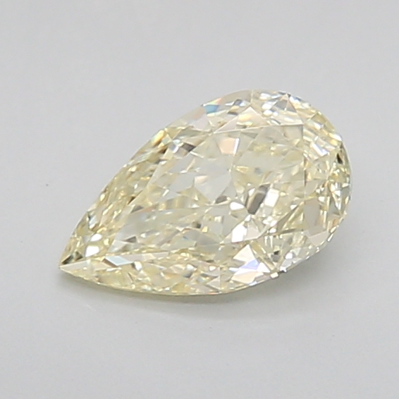 Elegant natural light-yellow pear-shaped diamond with crisp step facets and graceful length.