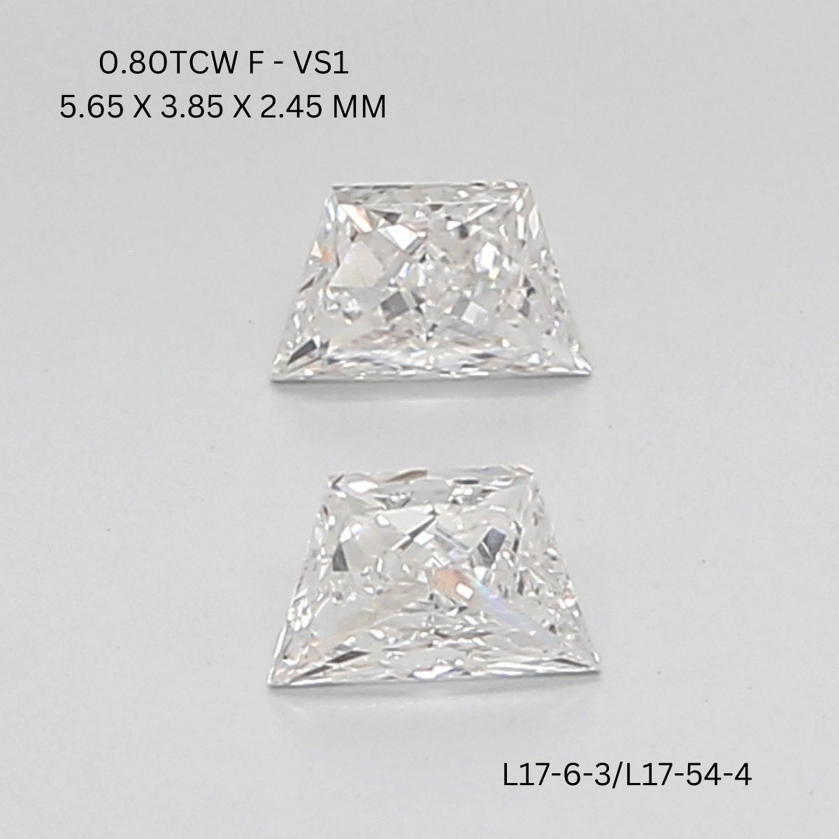 0.8 CT F VS1 TRAPEZOID diamond Pairs Inventory Total Weight: 0.8 Ct