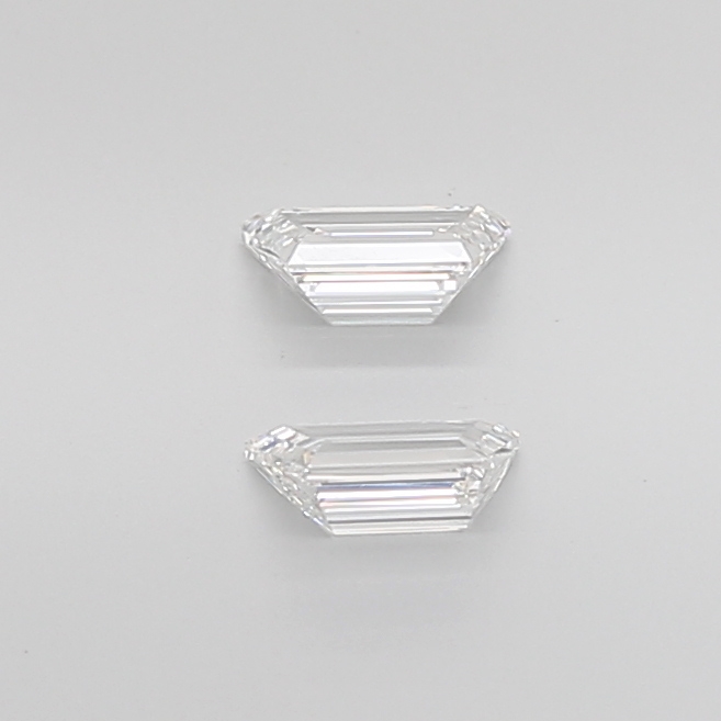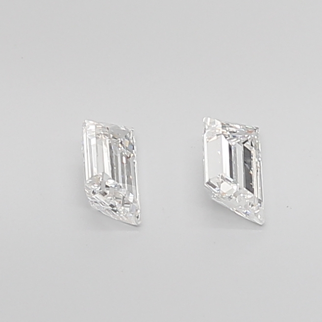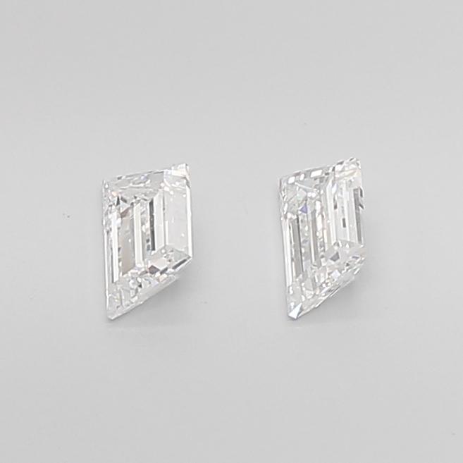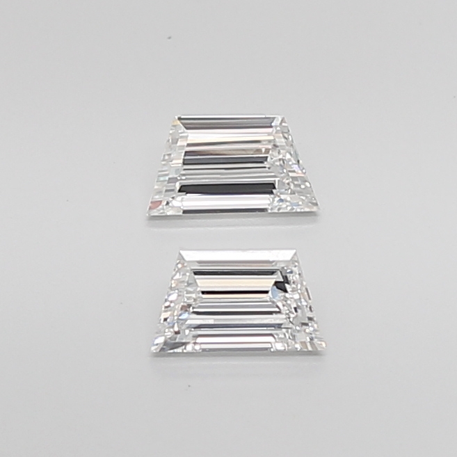 Well-matched natural trapezoid diamond pair displaying symmetry, clarity, and refined step faceting.