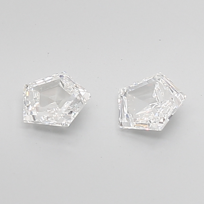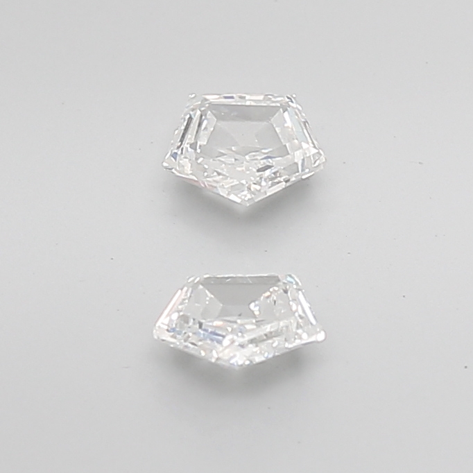 The striking Pentagonal shape sets this pair apart, offering a modern yet architectural aesthetic that appeals to collectors and designers seeking something truly unique. Enhanced by a classic Step cut, the diamonds reveal clean, linear facets that emphasize clarity, depth, and understated brilliance rather than overt sparkle. This cut highlights the stone?s internal purity and lends a sleek, elegant character to the overall appearance.