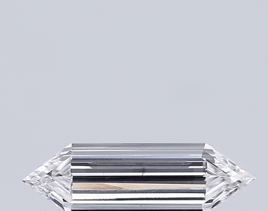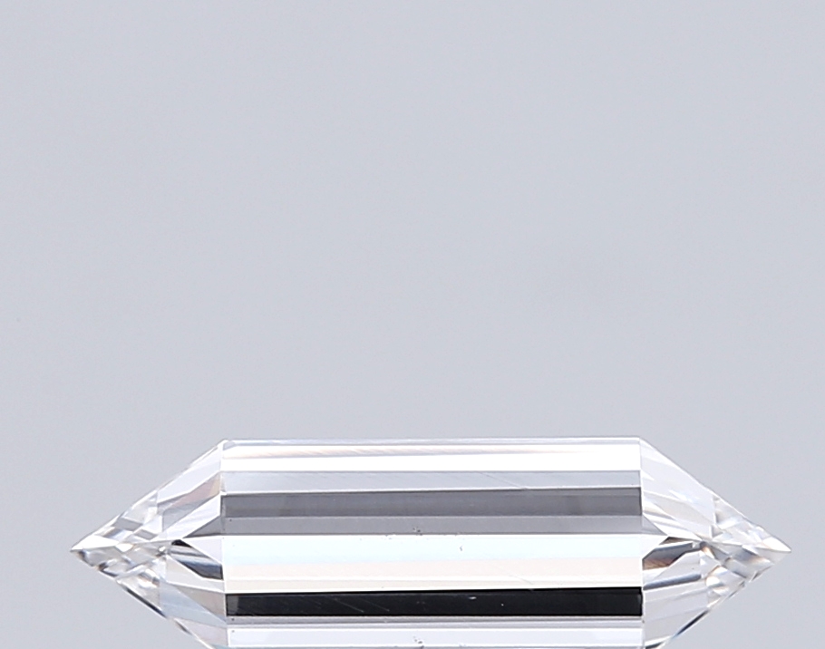 Sleek lab-grown hexagonal diamond with elongated proportions and crisp step-cut geometry.