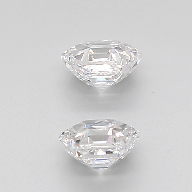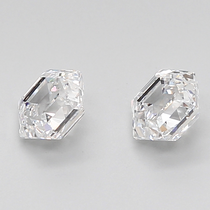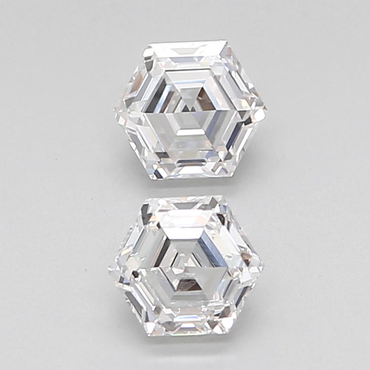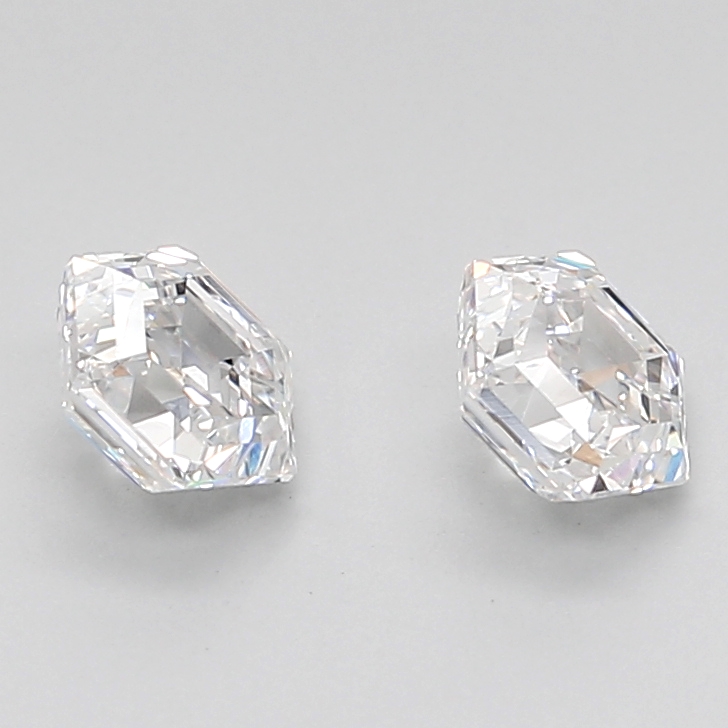 High-clarity lab-grown hexagonal diamond pair with sharp step faceting and symmetry.