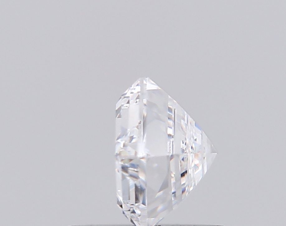 Bright hexagonal lab-grown diamond with sharp step faceting.