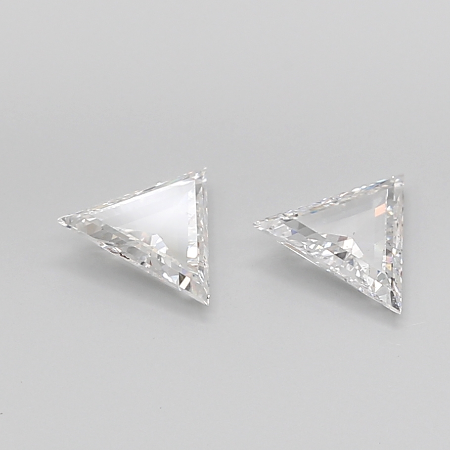 With a combined weight of 1.25 carats, these diamonds are perfectly paired for use as side stones, accent elements, or bespoke design features where symmetry and proportion are paramount. Their distinctive triangular shape features clean, sharp angles that create a modern, architectural profile, offering a striking alternative to traditional side stones.