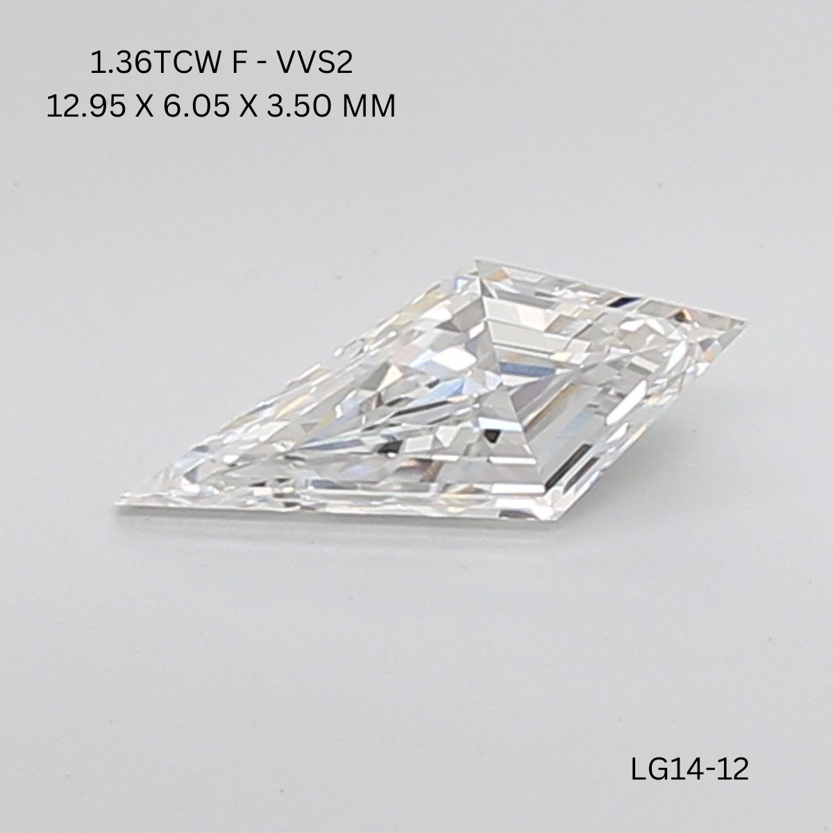 Delicate lab-grown kite-shaped diamond with clean step facets and a sleek, modern form.