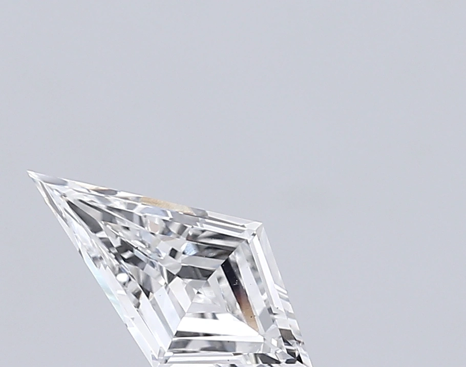 1.44 carat F-color Kite-shaped lab diamond with Step Cut and VS1 clarity. Measures 13.7mm x 7.1mm.