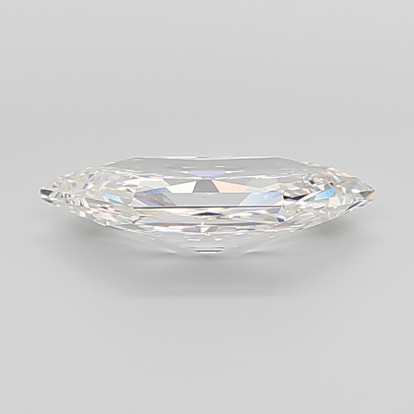 Graded E color, the diamond exhibits a bright, near-colorless appearance with exceptional brilliance and purity. Its VVS2 clarity ensures inclusions are extremely difficult to detect even under magnification, resulting in outstanding transparency and visual refinement. Measuring 13.75 mm in length and 4.4 mm in width, with a height of 2.9 mm, this diamond presents a sleek profile and graceful proportions ideal for minimalist solitaires or avant-garde custom designs.