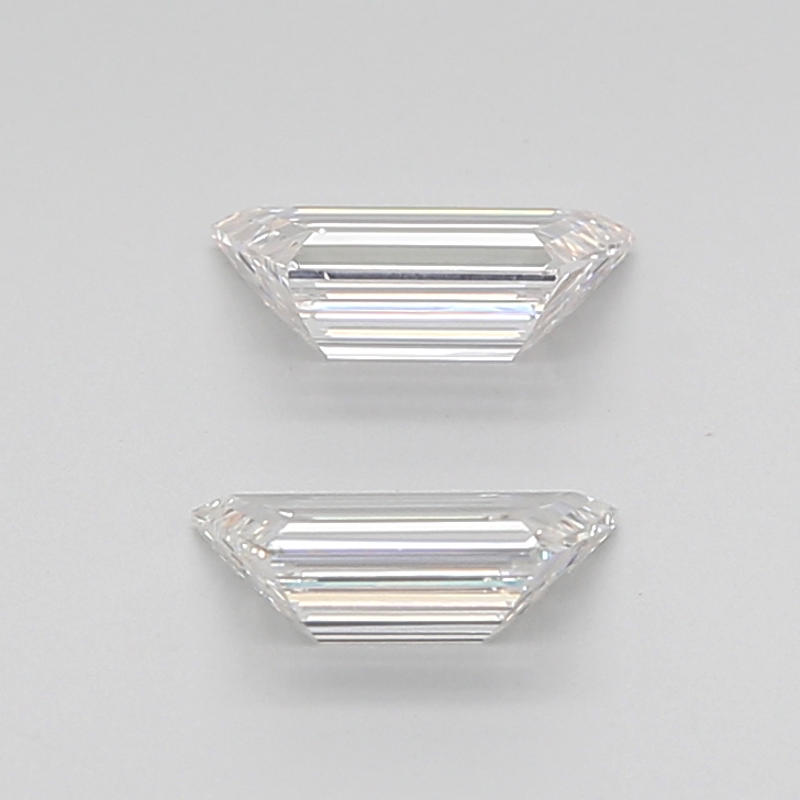High-clarity lab-grown trapezoid diamond pair with crisp step faceting.
