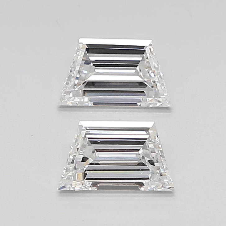 Lab-grown trapezoid-cut diamonds with refined step faceting.