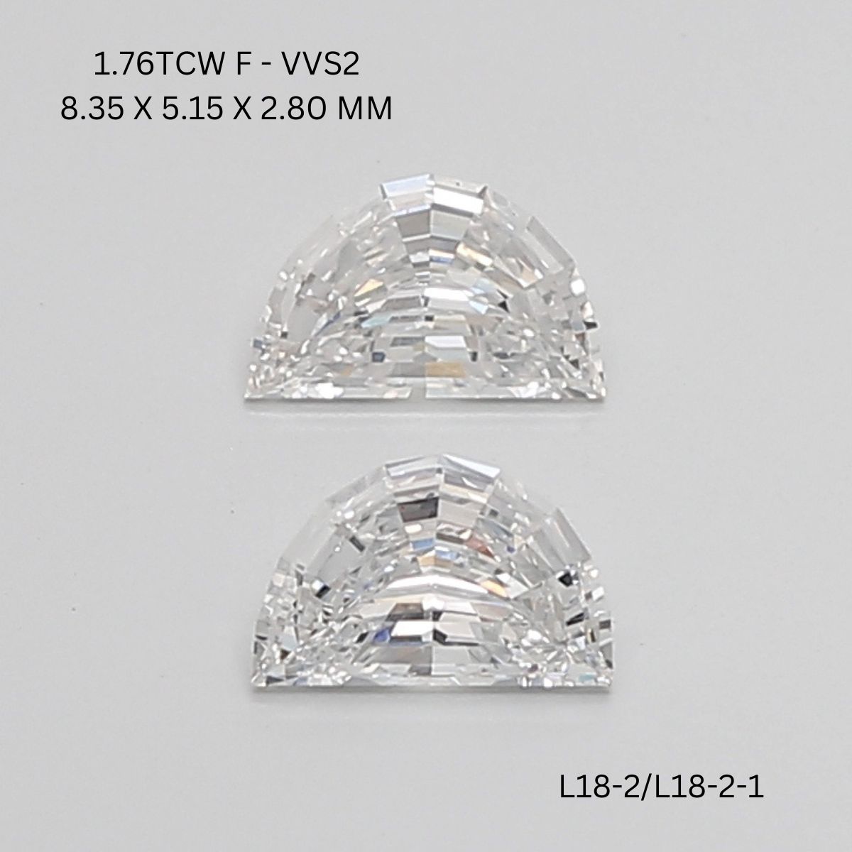 Elegant, balanced, and beautifully precise, this lab-grown half-moon diamond pair from OM Jewels Inc showcases refined craftsmanship and exceptional clarity. Each diamond weighs 1.76 carats and is carefully matched to create a harmonious pair defined by symmetry, proportion, and architectural elegance.