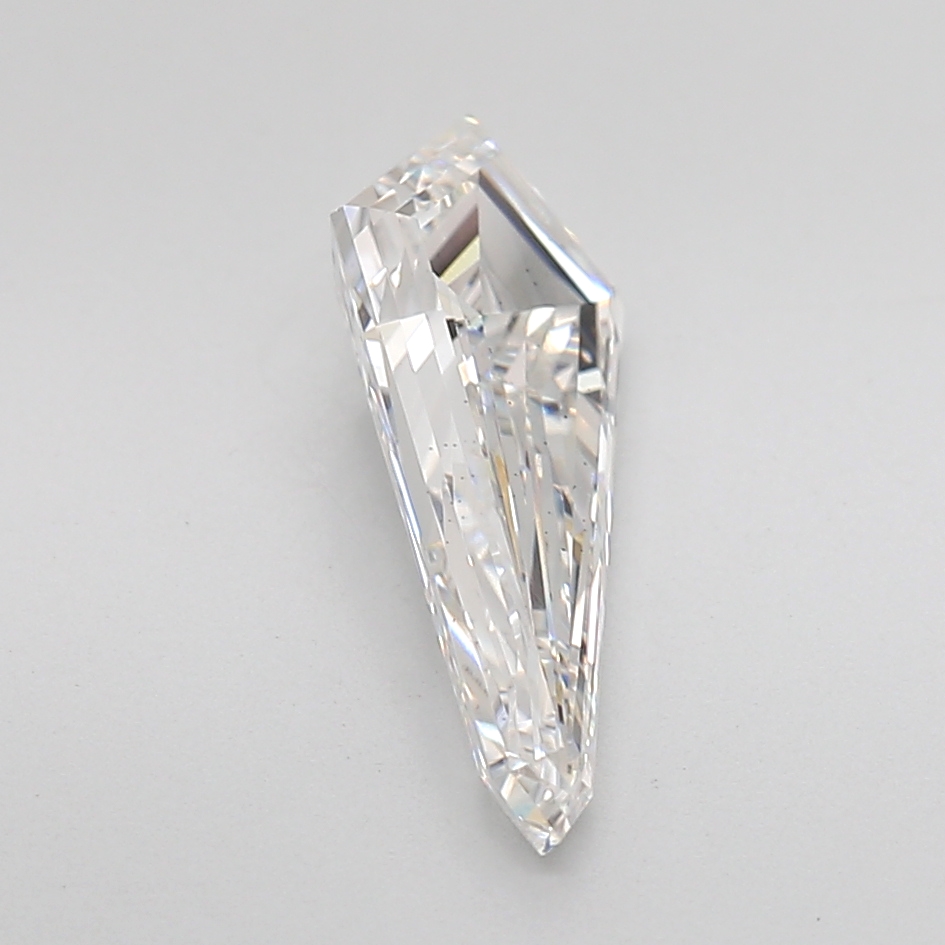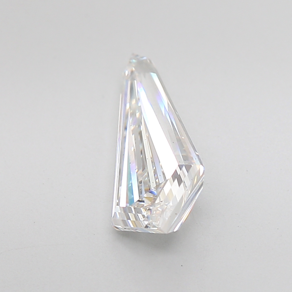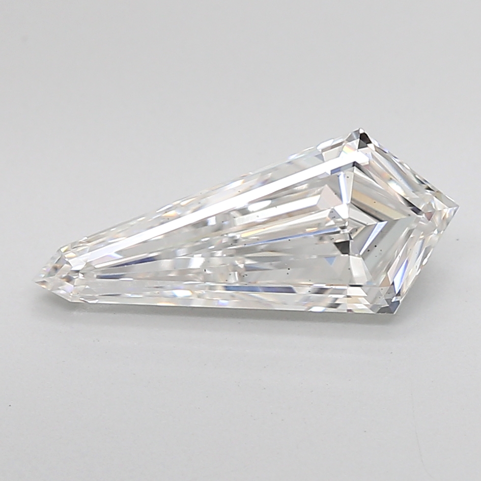 Striking lab-grown kite-shaped diamond with elongated proportions and clean step faceting.