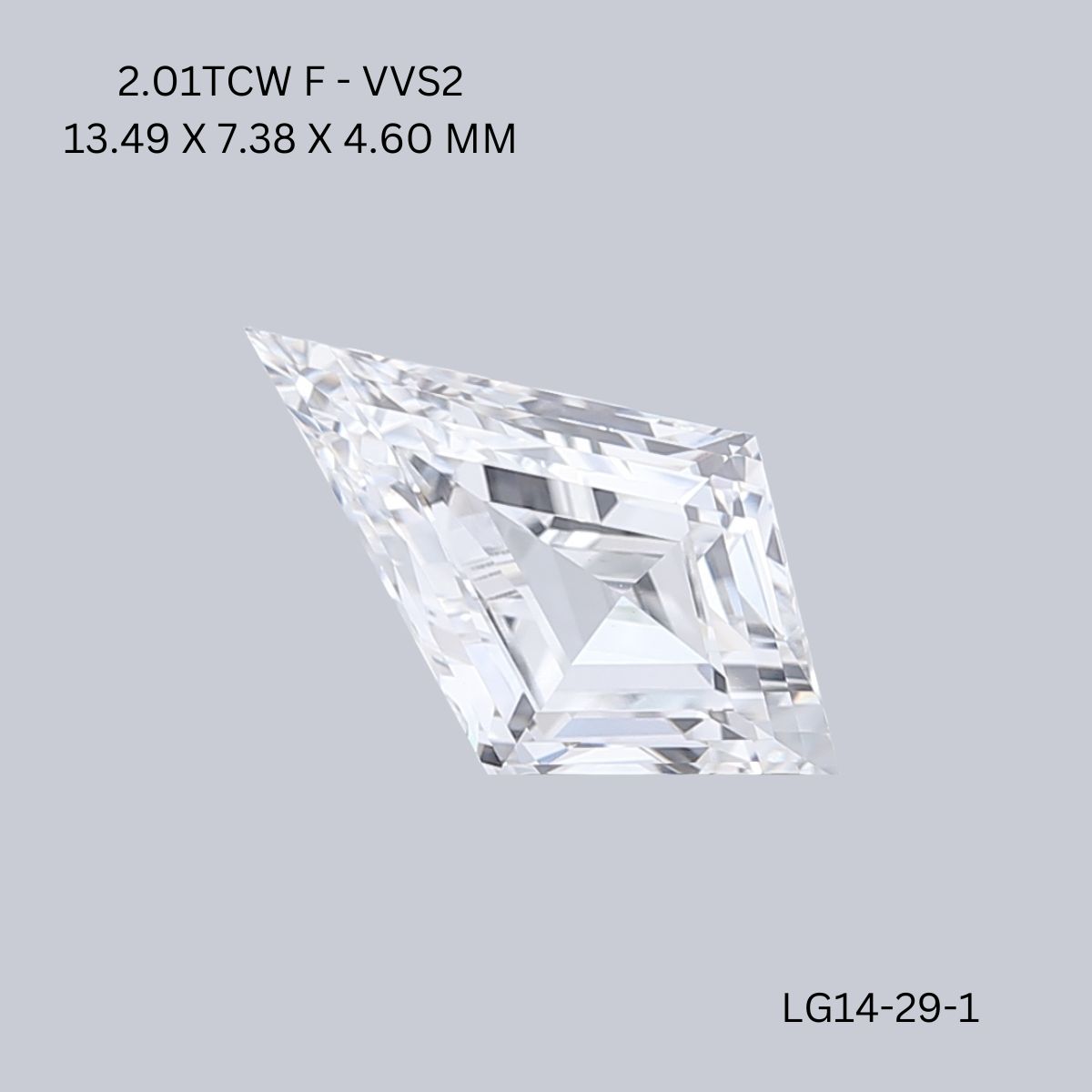 Sleek lab-grown kite-shaped diamond featuring crisp step facets and balanced proportions.
