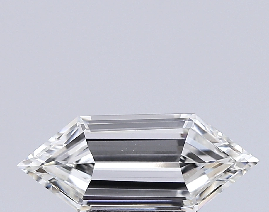 2.03 carat F-color Hexagonal lab diamond with Step Cut and VS1 clarity. Dimensions: 14.18mm x 5.77mm.