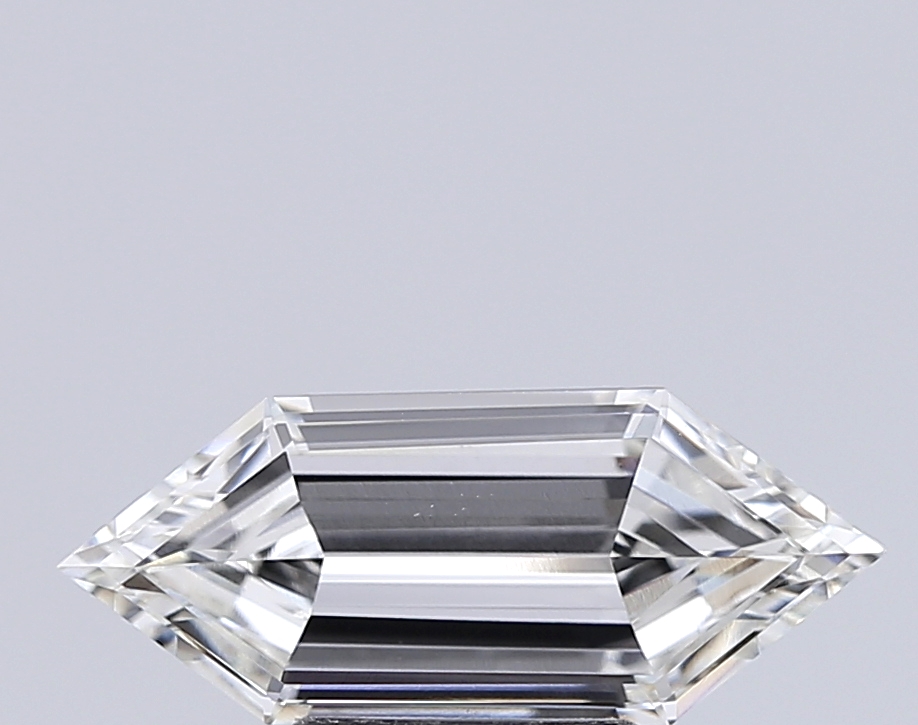 Sleek lab-grown hexagonal diamond with sharp step facets and a modern, architectural profile.