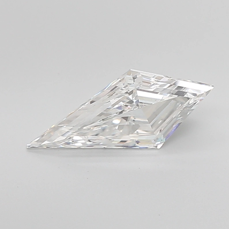 2.05 carat E-color Kite-shaped lab diamond with Step Cut and VS2 clarity. Measures 14.89mm x 6.57mm.