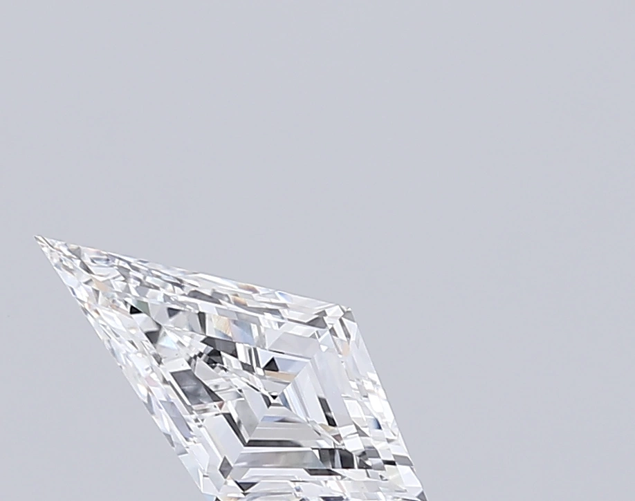 2.08 carat E-color Kite-shaped lab diamond with Step Cut and VS1 clarity. Dimensions: 14.02mm x 7.1mm.