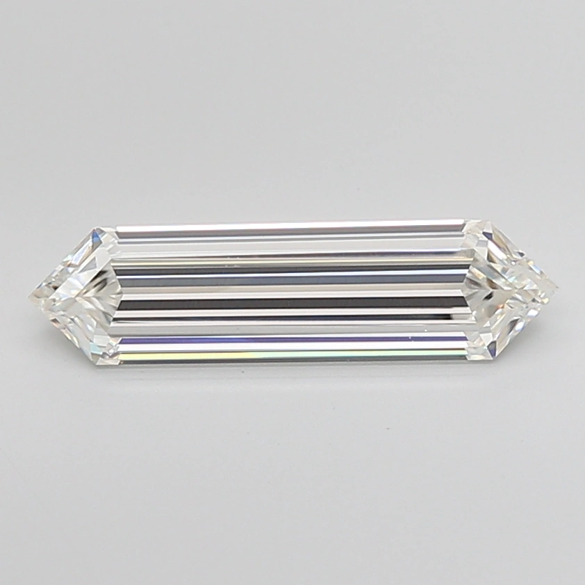 2.09 carat F-color Hexagonal lab diamond with Step Cut and VVS2 clarity. Measures 16.93mm x 4.45mm.