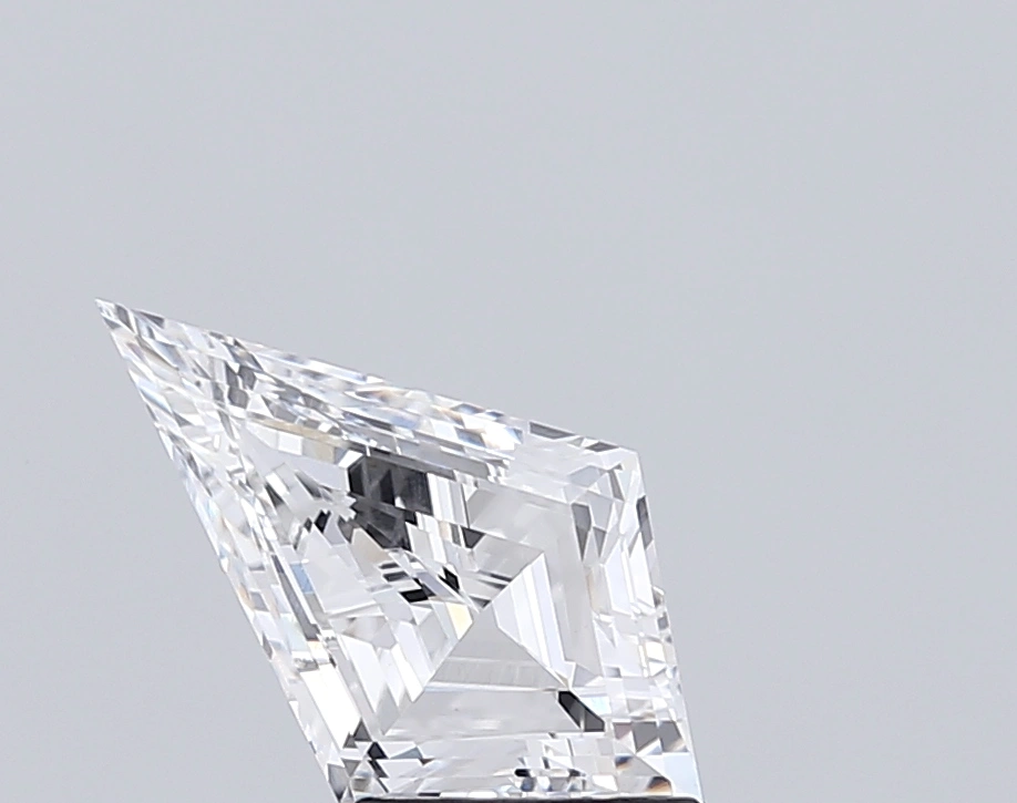 2.10 carat E-color Kite-shaped lab diamond with Step Cut and VVS2 clarity. Dimensions: 13.25mm x 7.74mm.