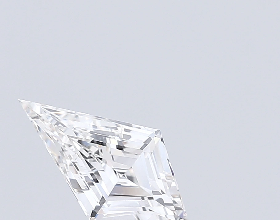 2.11 carat F-color Kite-shaped lab diamond with Step Cut and VS1 clarity. Measures: 13.88mm x 7.61mm.