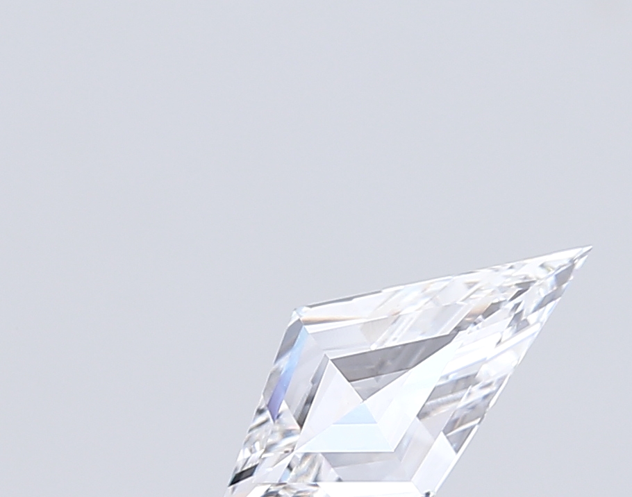 Exceptionally clean lab-grown kite-shaped diamond with precise step facets and sharp geometry.