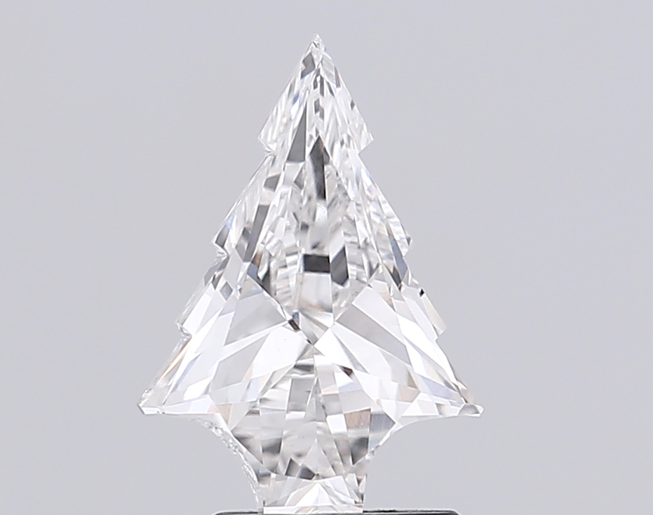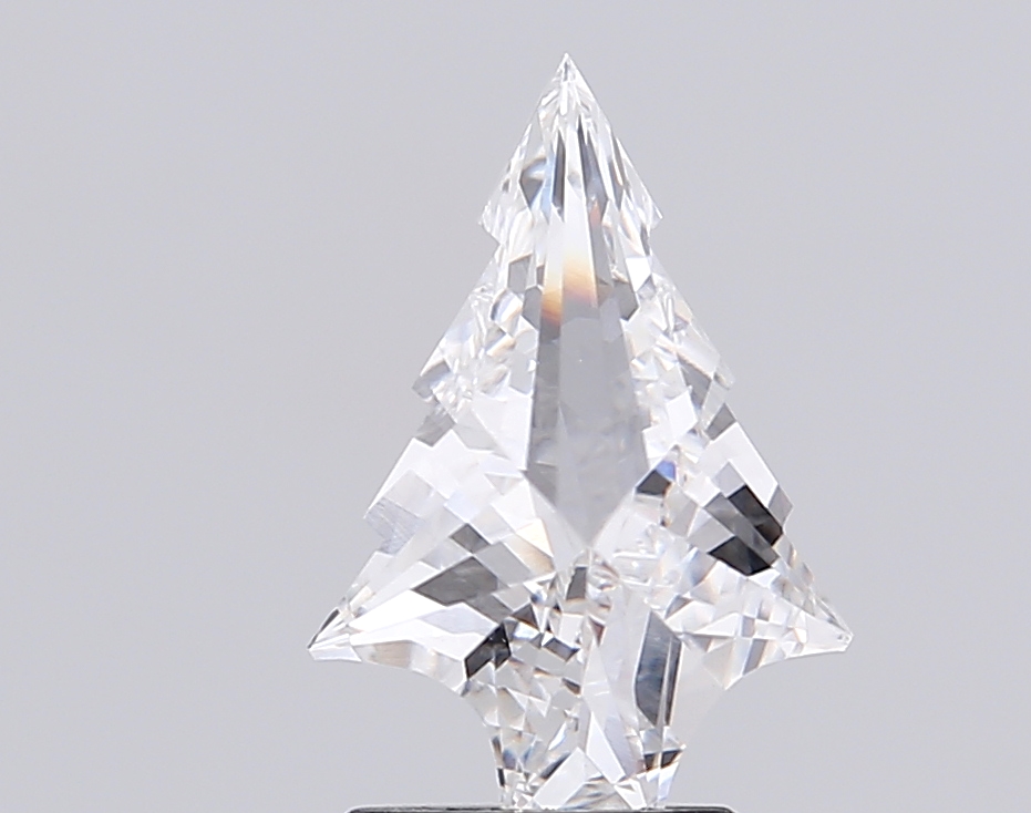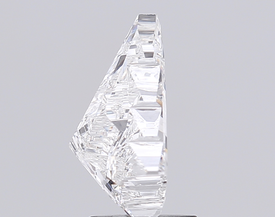 Geometric lab-grown diamond-shaped stone with crisp step facets and strong presence.
