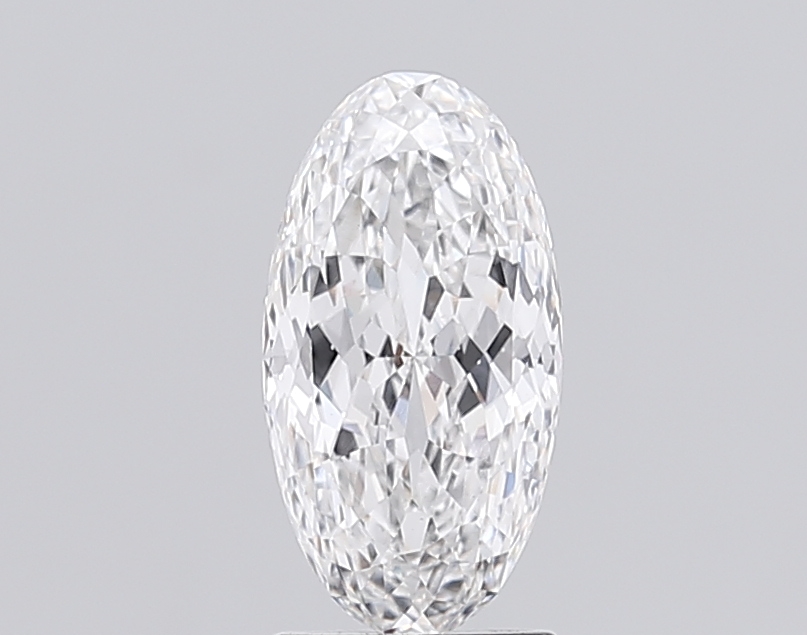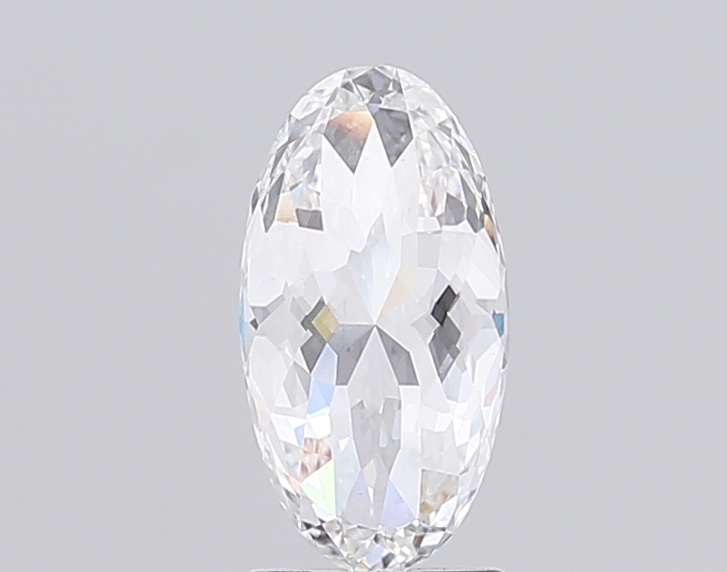 Lab-grown E-color oval diamond with detailed Portuguese-cut brilliance.