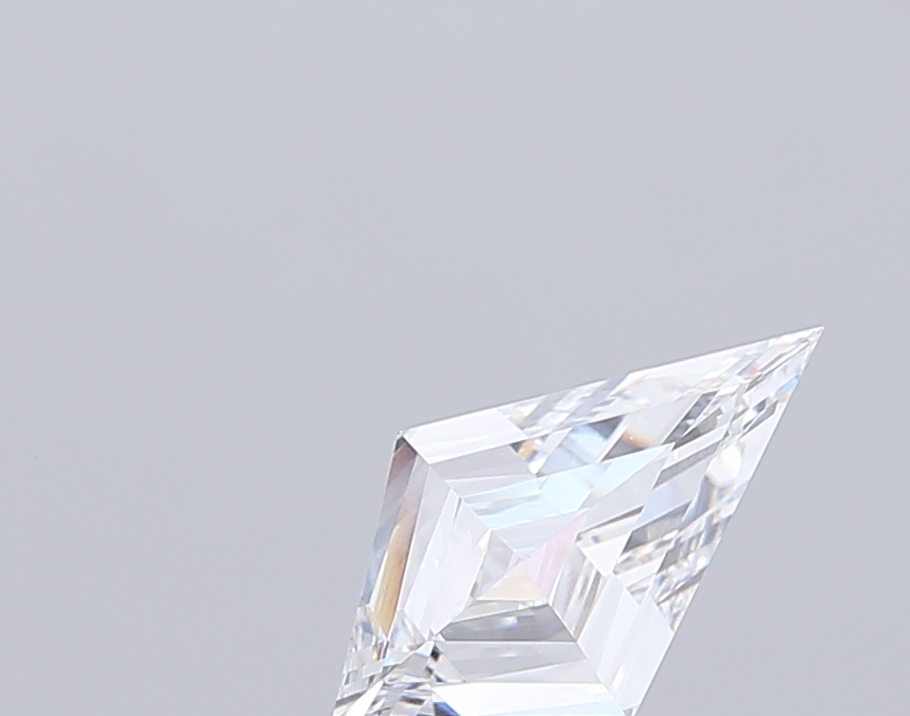 Cleanly cut lab-grown kite-shaped diamond with crisp step facets and a modern silhouette.