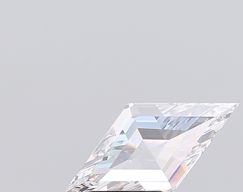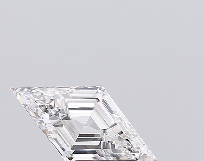 Lab-grown G-color lozenge diamond with sleek step-cut geometry.
