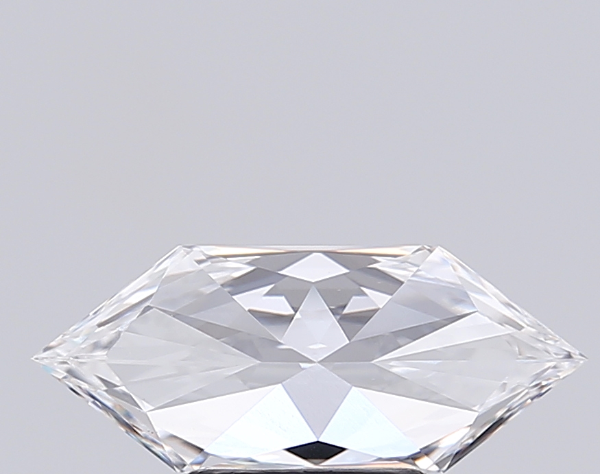Striking lab-grown hexagonal diamond with elongated proportions and bold brilliance.