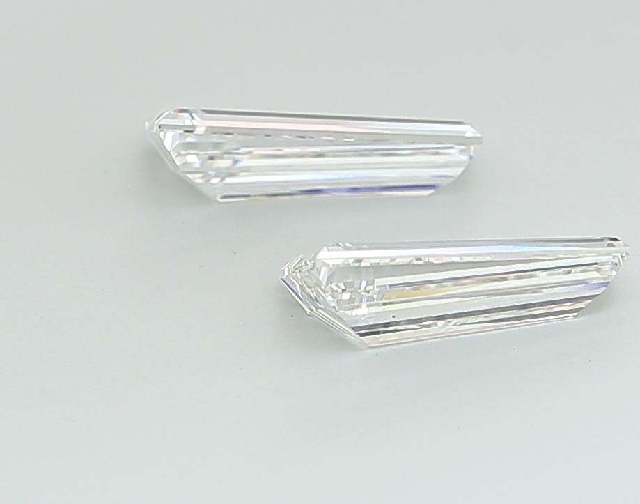Refined lab-grown tapered diamond pair with clean faceting and balanced visual harmony.