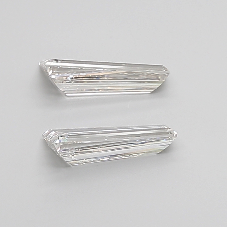 Refined in form and beautifully matched, this 2.67 carat lab-grown tapered diamond pair from OM Jewels Inc exemplifies precision, balance, and modern elegance. Thoughtfully selected for their harmonious proportions and consistent appearance, these diamonds are designed to work together seamlessly?making them ideal for sophisticated side stones, elegant earrings, or bespoke symmetrical creations.