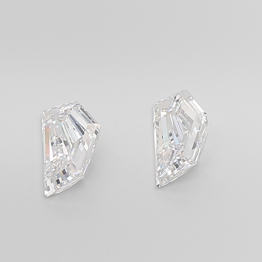Distinctive lab-grown Cadillac-cut diamond pair with sharp step facets and bold angular lines.