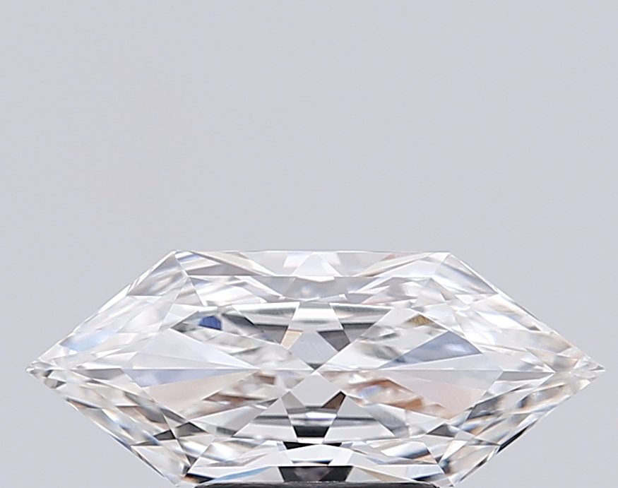 Bold lab-grown hexagonal diamond with elongated proportions and vivid brilliance.